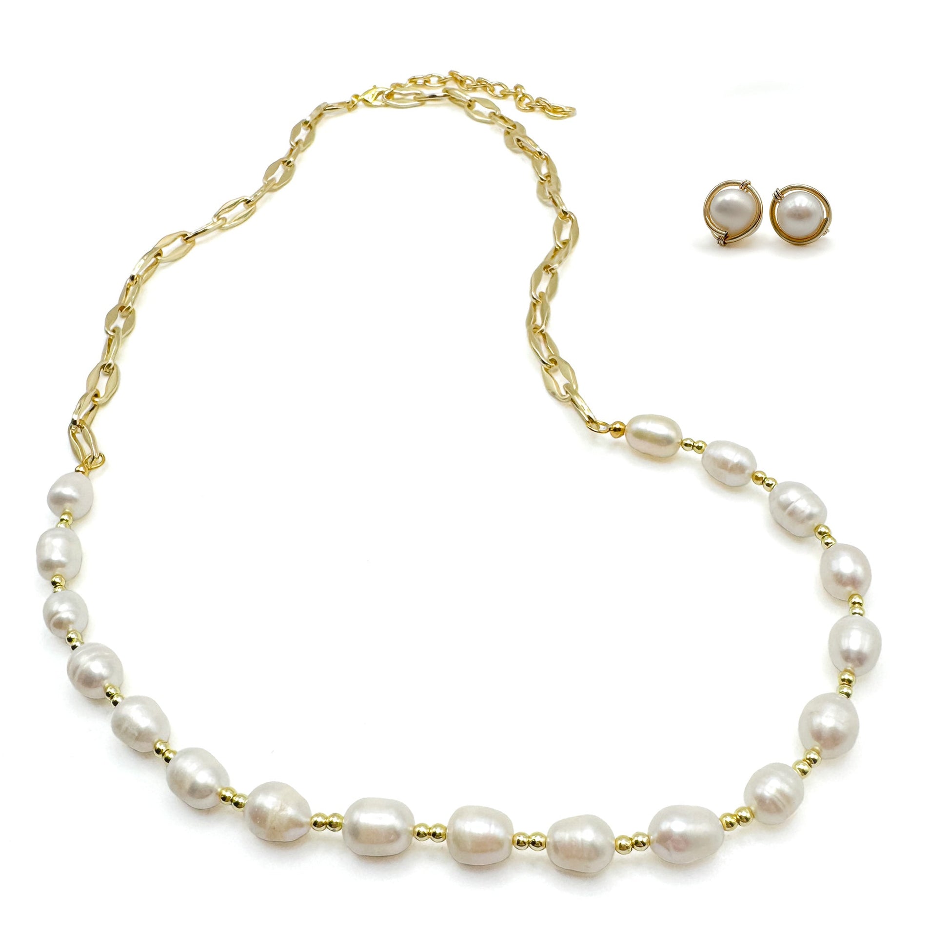 Chunky gold paperclip chain and stunning freshwater pearls merge to bring you a statement classic necklace for every fall top and sweater. Layer it with our new Terra necklace or frame in your favorite Alegria cross or pendant. 24-27 inch total length with a lobster clasp and 3 inch extender.