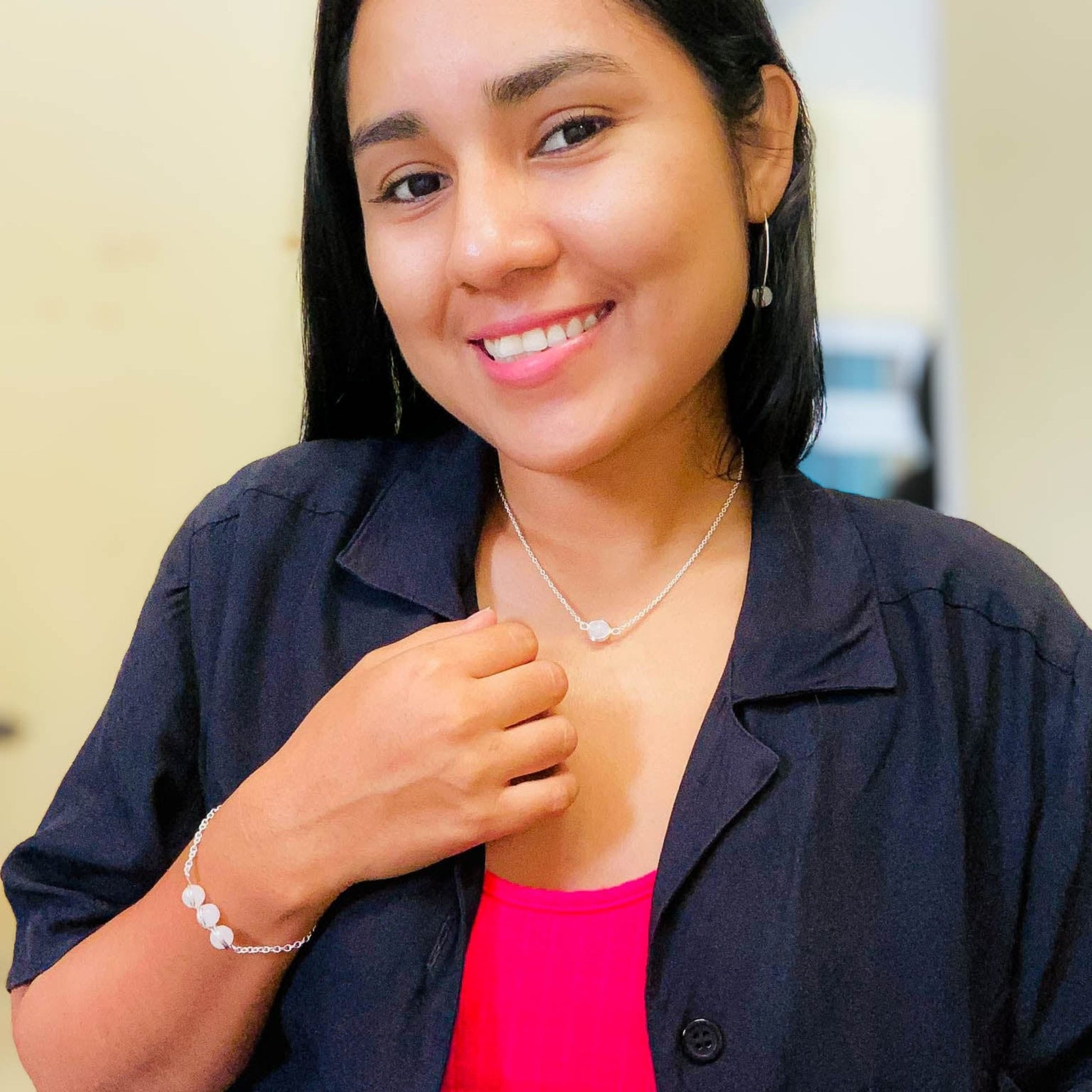 White jade faceted stones are wired together into a delicate centerpiece of this dainty bracelet. 6 3/4 inches of silver plated cable chain and silver wire and jade is finished with 1 1/2 inches of extender chain and a lobster clasp.