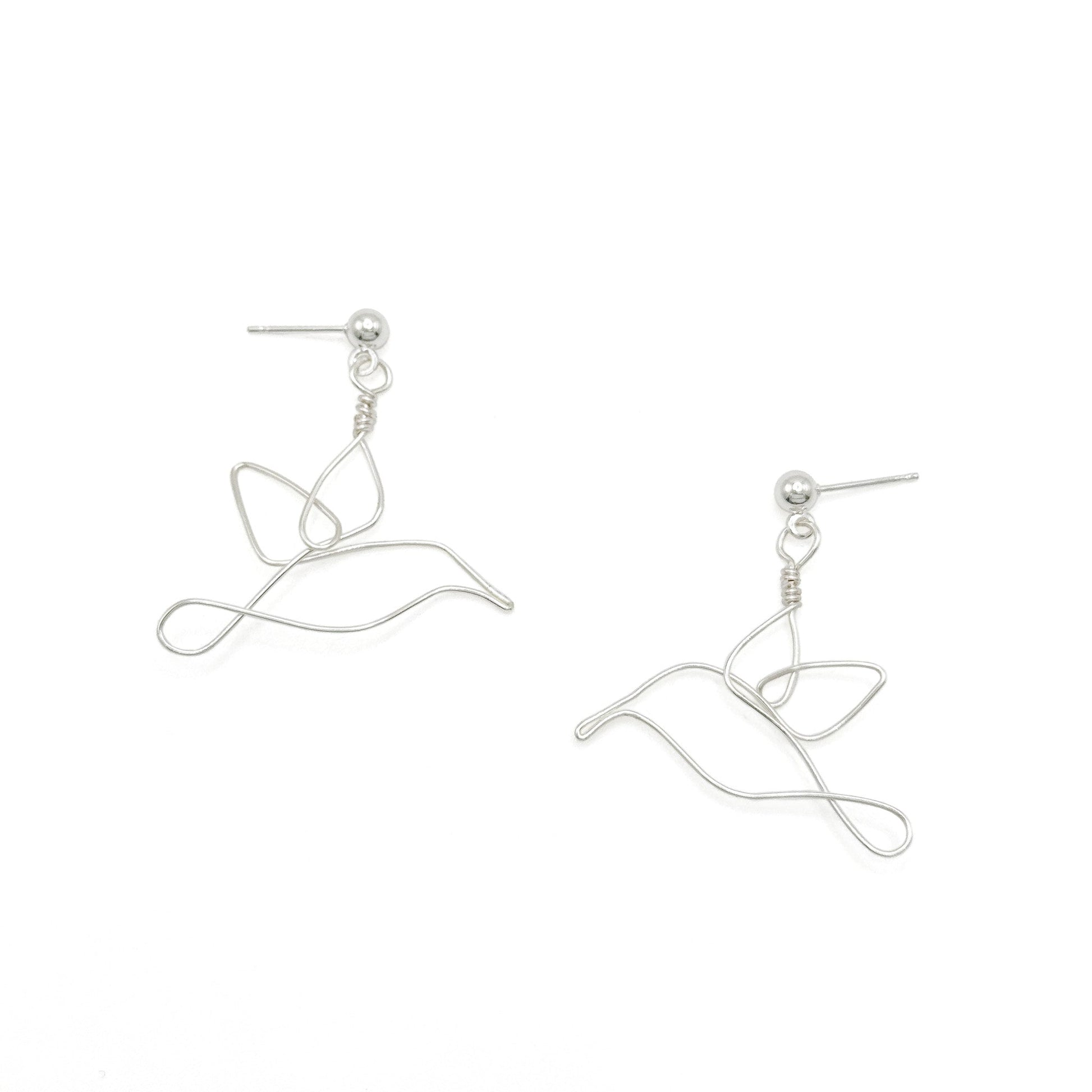 Silver wire hummingbirds dangle from a silver plated post. 1 1/2 inch total length