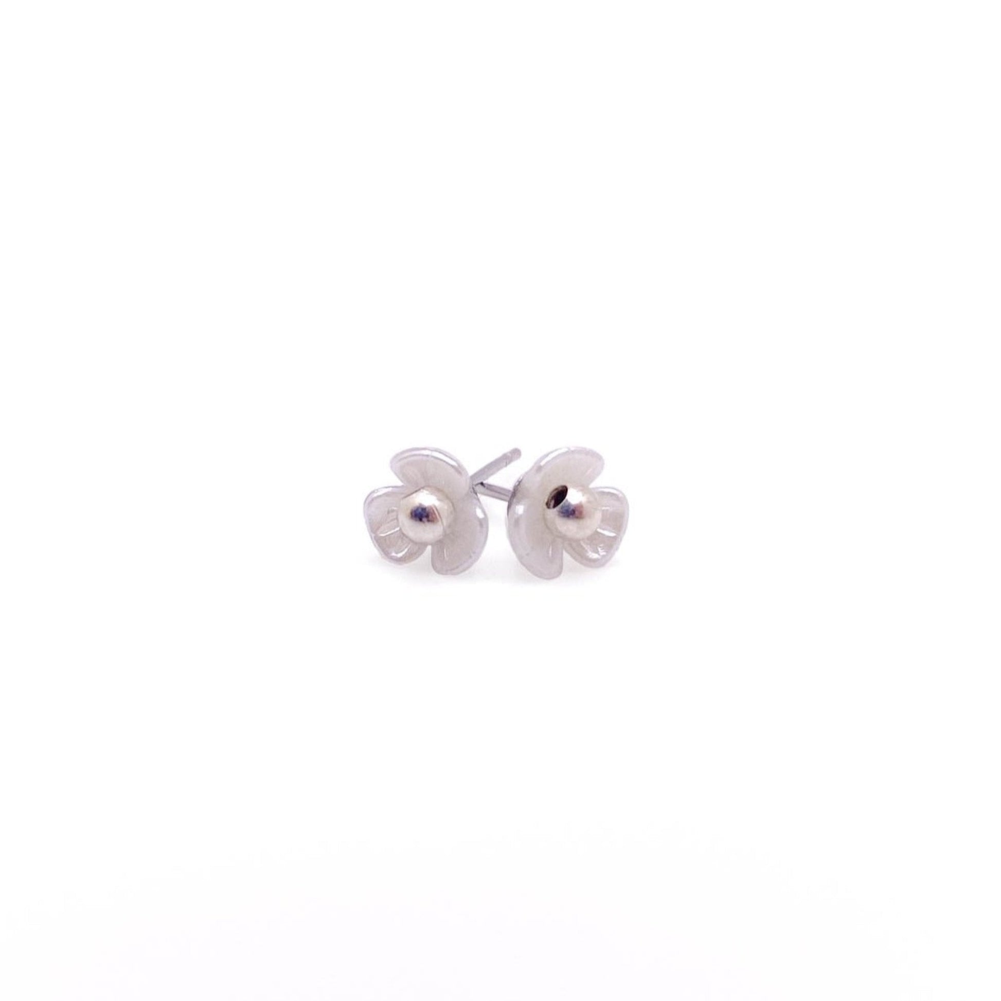 Enamel flowers hold a hand-set silver bead. Surgical stainless steel, nickel free posts.